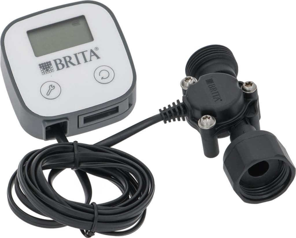 BRITA Flow Meter 10 – 100 Anzeigeeinheit: 62 x 50 x 17 mm (L x B x H). Durchflussbereich: 10 - 100 Liter/h. Max. Leitungslänge: 1,5 m. Zulaufanschluss mit Überwurfmutter: 1 x G 3/8 Zoll. Ablaufanschluss: 1 x G 3/8 Zoll.